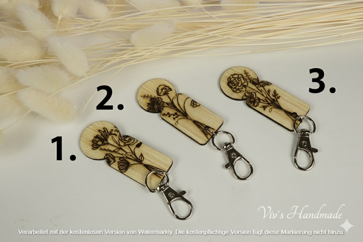 Praktisch, stilvoll und nachhaltig: Diese Einkaufswagenlöser aus Holz sind die ideale Alternative zur klassischen Chip-Lösung. Jedes Stück ist mit einem feinen Blumenmotiv per Diodenlaser graviert – es stehen drei verschiedene Designs zur Auswahl.