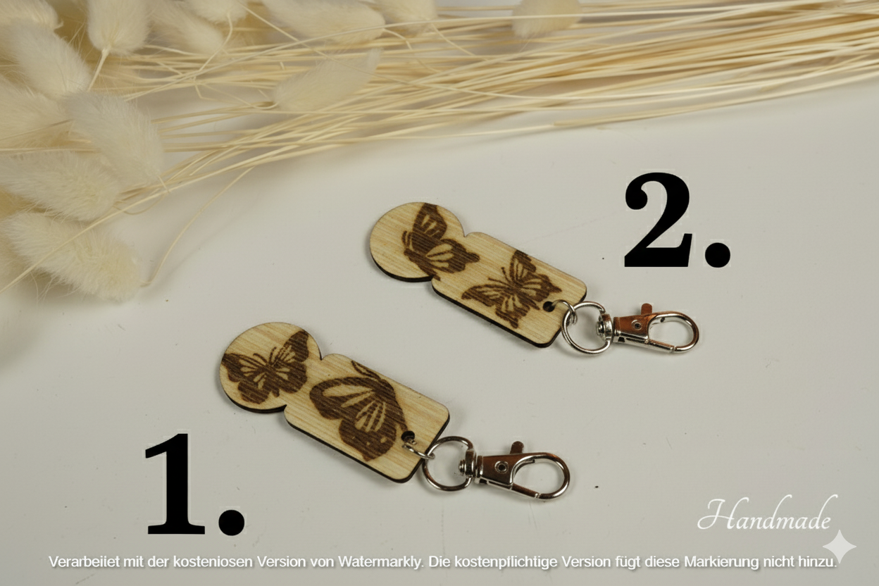 Diese Einkaufswagenlöser verbinden praktische Handhabung mit einem natürlichen Design. Gefertigt aus Holz und mit einem Schmetterlingsmotiv per Diodenlaser graviert, stehen zwei unterschiedliche Varianten zur Auswahl.