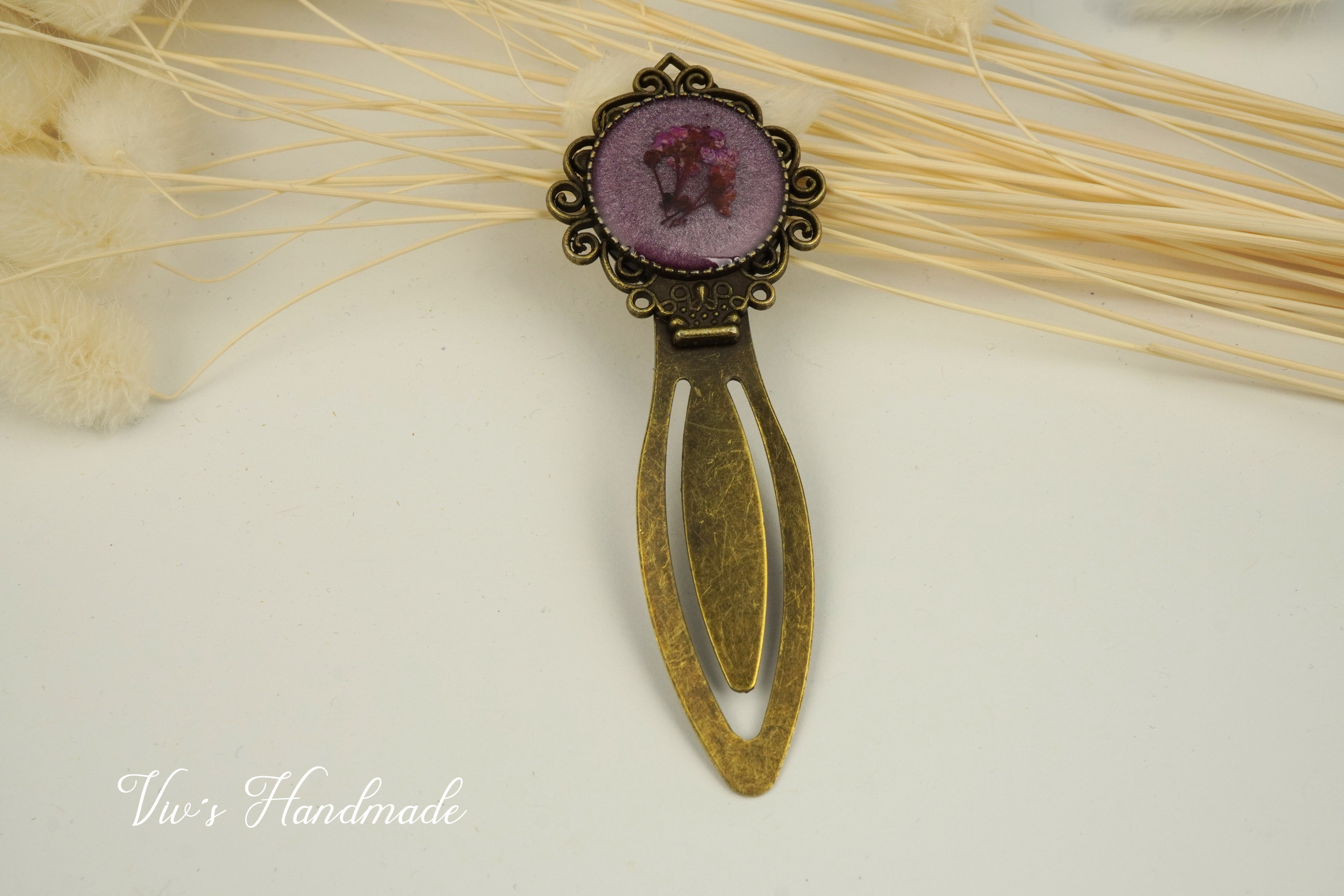 Dieses handgefertigte Vintage-Lesezeichen* ist ein zauberhaftes und praktisches Accessoire für jeden Buchliebhaber. Er ist mit echten, zarten Blumen und einem dezent schimmernden Pigment-Hintergrund in Epoxidharz gefüllt, der die Blüten elegant zur Geltung bringt.