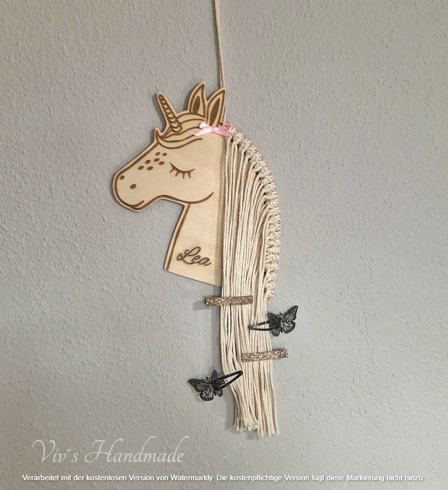 Personalisiertes Wandschild Einhorn aus Holz / Aufbewahrung Haarspangen