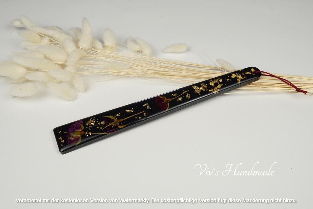 Diese Stickhilfe* ist mit gepressten Rosen, Goldflocken und einem schwarzen Hintergrund gefüllt. Dieses nützliche Werkzeug wurde entwickelt, um das Sticken mit mehreren Stofflagen zu erleichtern und Ihre Hände zu entlasten. Mit ihrer handlichen Länge von 25 cm liegt die Stickhilfe angenehm in der Hand, gibt sicheren Halt und fixiert Ihre Stofflagen zuverlässig – ganz ohne sie mit den Fingern festhalten zu müssen. Dadurch wird das Risiko, sich versehentlich zu stechen, deutlich reduziert.